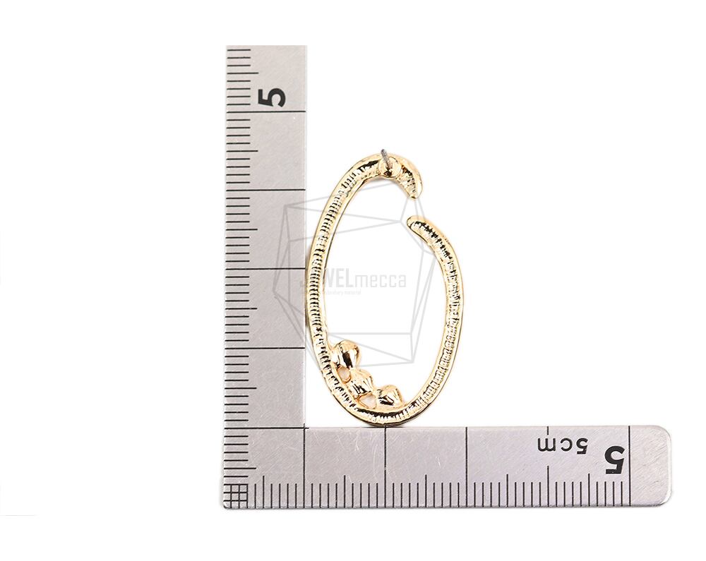ERG-2012-G/2PCS/Round Post Earring/19.7mm X 34.5.mm/Gold Plated Over Tin,Stainless Post