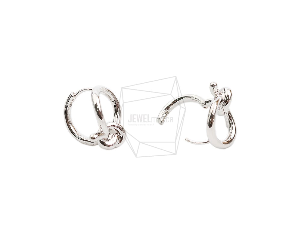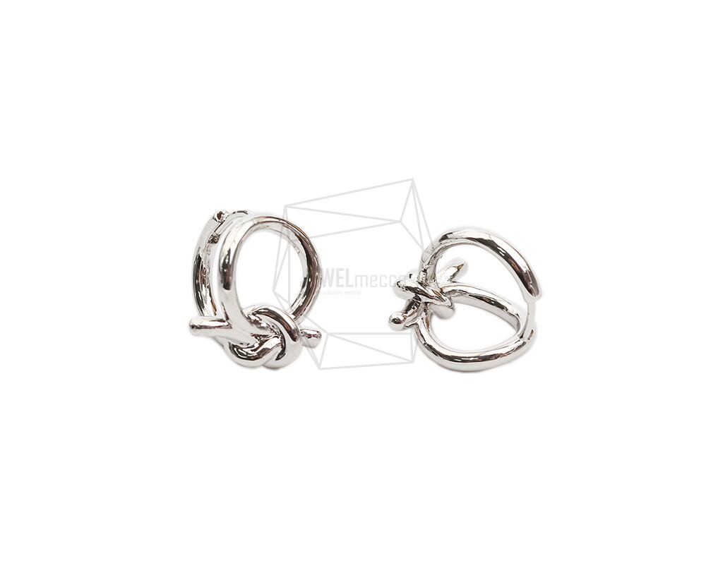 ERG-2040-R/2PCS/Round One touch Post Earring/18.3mm X 19mm/Rhodium Plated Over Brass