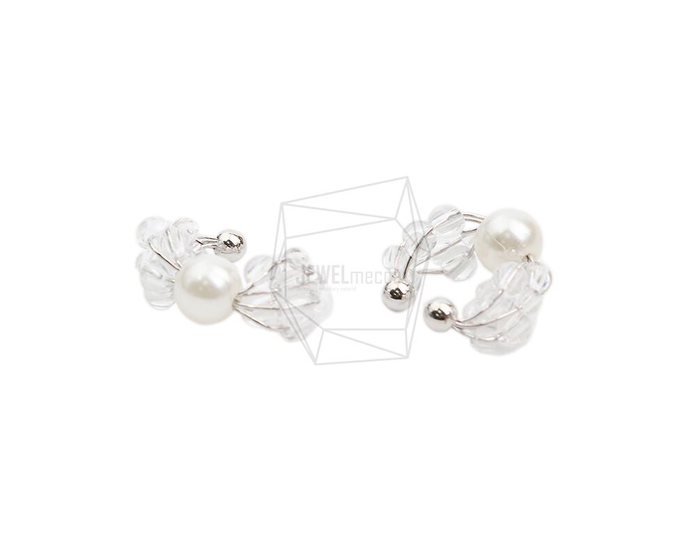 ERG-2043-R/2PCS/Beads Round Earcuffs Earrings/19.6mm X 22mm/Rhodium Plated Over Brass,Imitation pearl,Beads