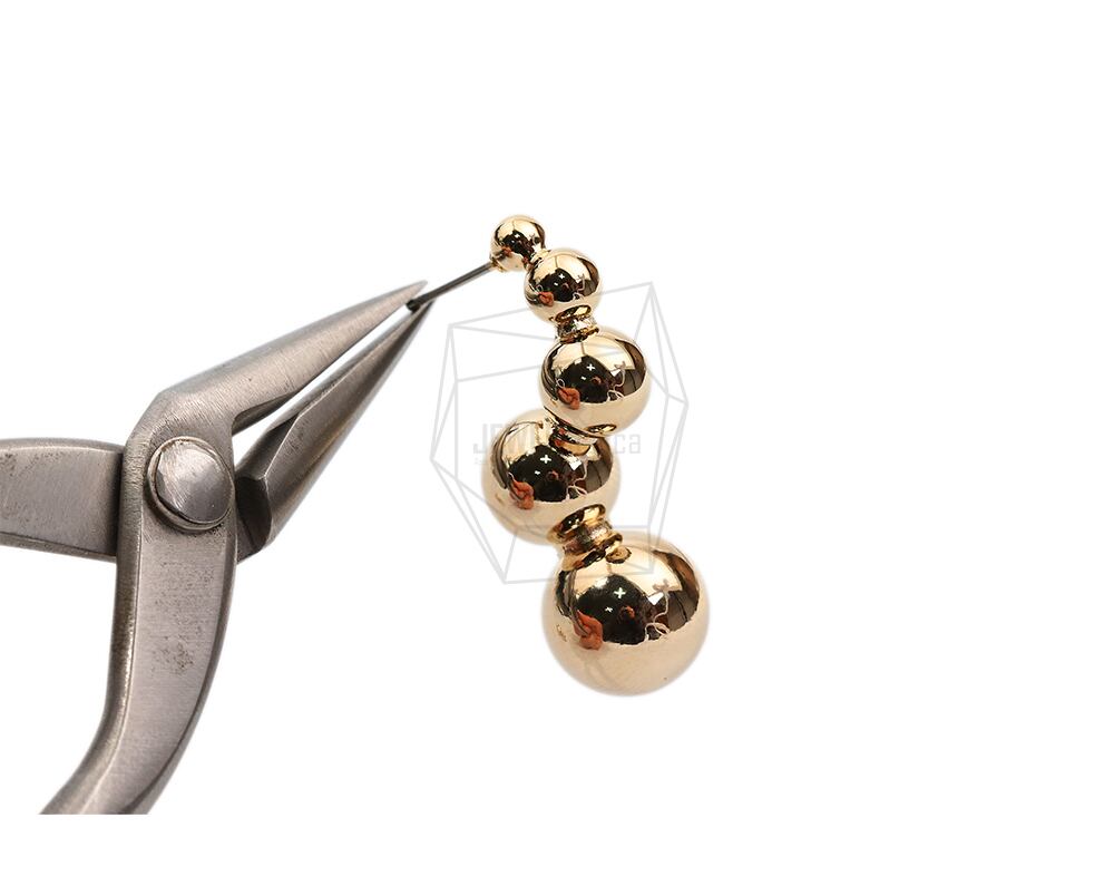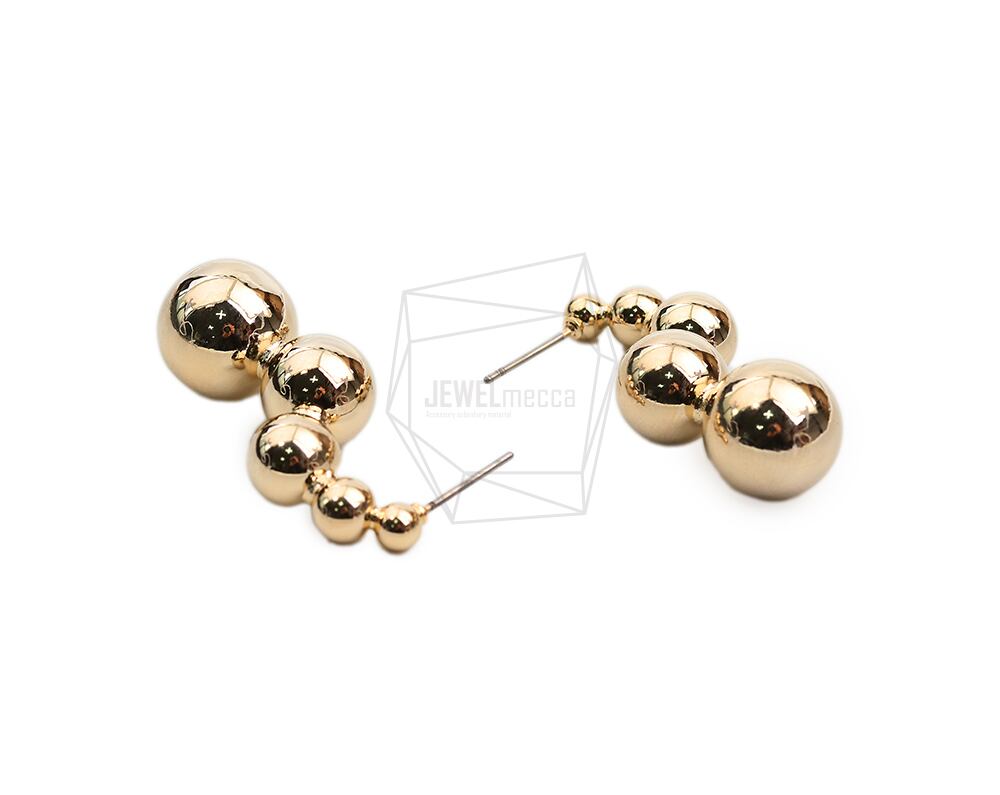 ERG-2053-G/2PCS/Multi ball round Post Earring/17.4mm X 34.8mm/Gold Plated over Brass,Stainless Post