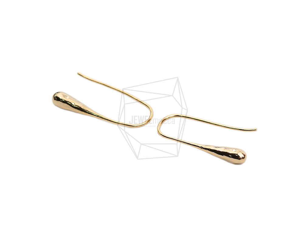 ERG-2055-G/2PCS/Curved Plate Hook Earring/11mm x 24mm/Gold Plated over Brass