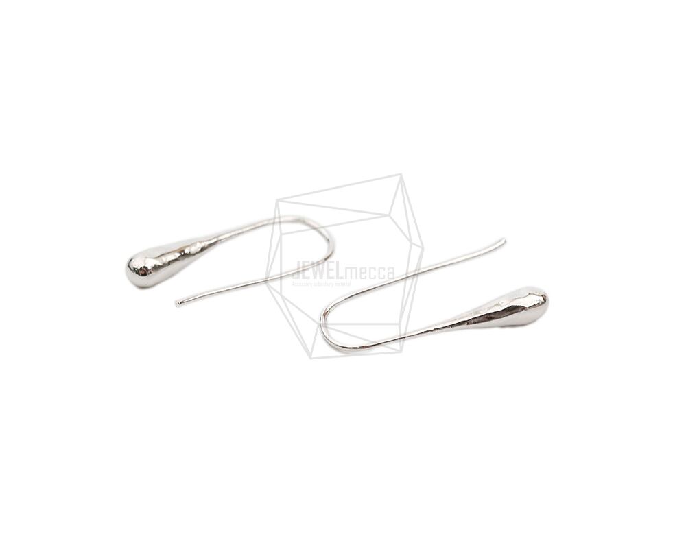 ERG-2055-R/2PCS/Curved Plate Hook Earring/11mm x 24mm/Rhodium Plated over Brass