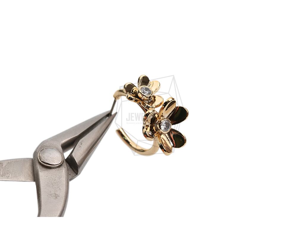 ERG-2056-G/2Pcs-Cubic Zirconia Setting Flower Ear Post/ 22.6mm x 24mm /Gold Plated over Brass/Stainless Post
