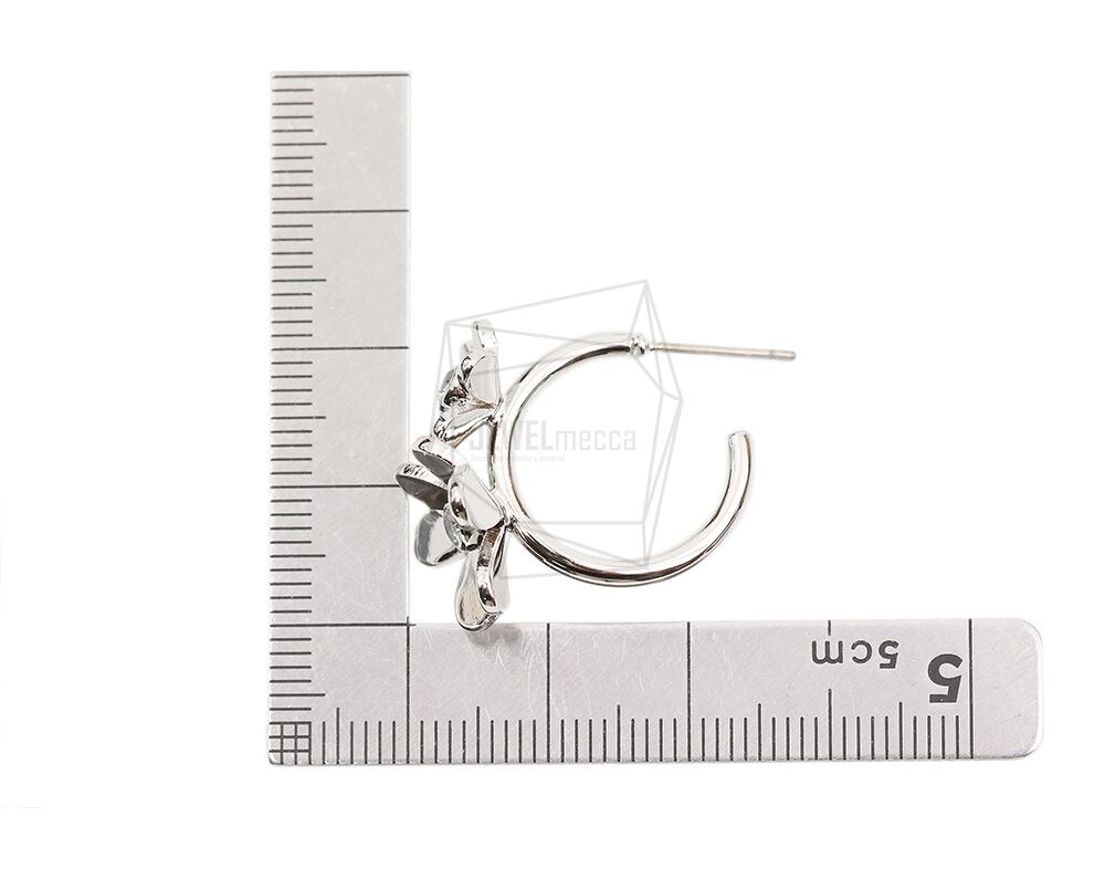 ERG-2056-R/2Pcs-Cubic Zirconia Setting Flower Ear Post/ 22.6mm x 24mm /Rhodium Plated over Brass/Stainless Post