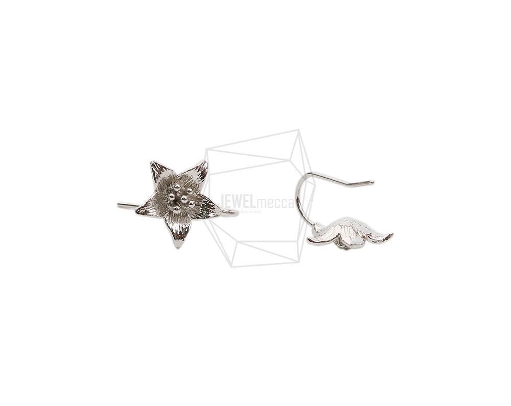 ERG-2057-R/2PCS/Star Hook Earring/Star Earwire/11mm x 15mm/Rhodium Plated over Brass