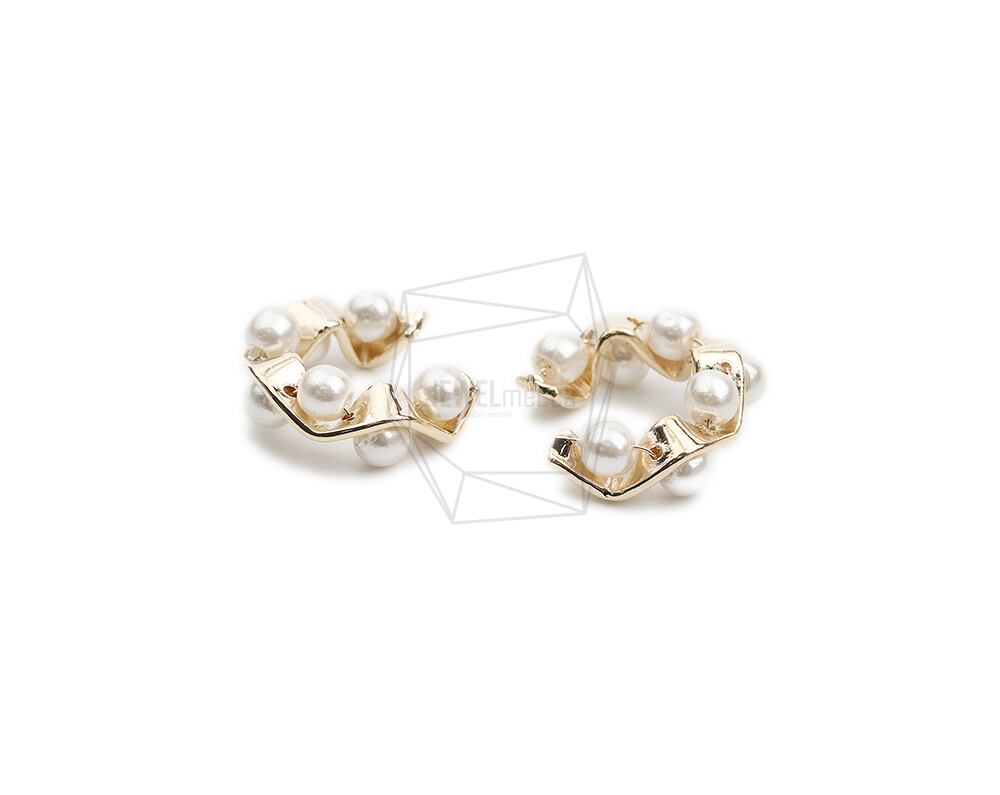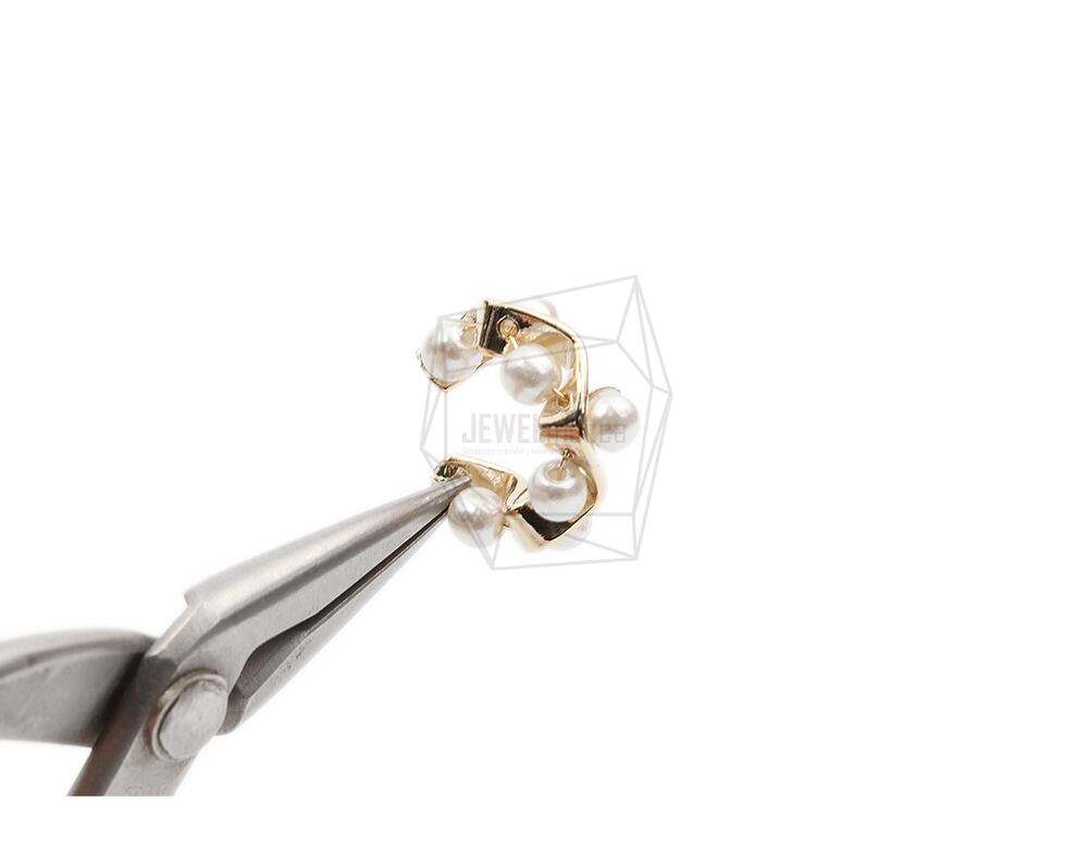ERG-2060-G/2PCS/Round Earcuffs Earrings/16mm X 16.4mm/Gold Plated Over Brass,Imitation pearl