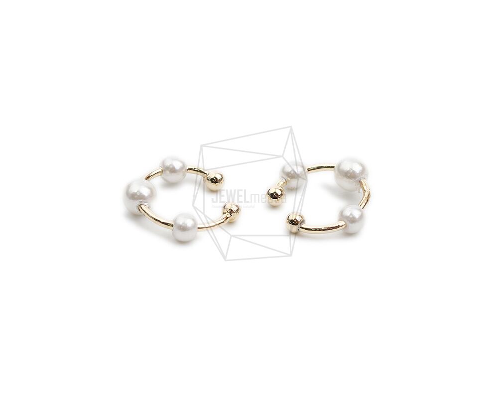 ERG-2061-G/2PCS/Round Earcuffs Earrings/16mm X 17mm/Gold Plated Over Brass,Imitation pearl