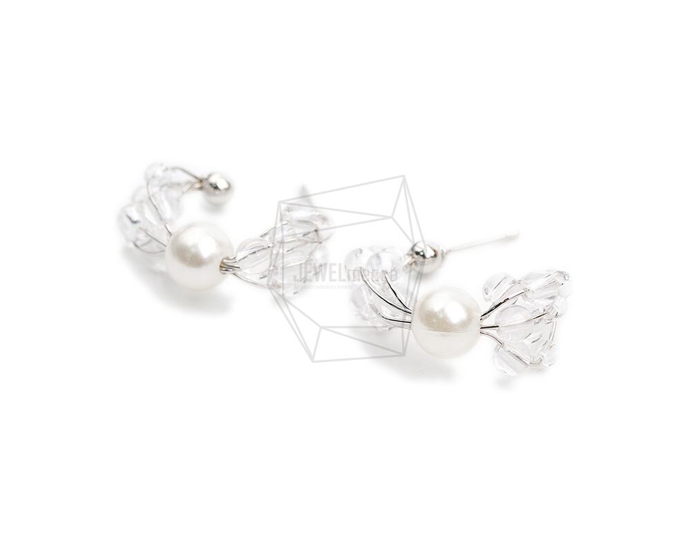 ERG-2064-R/2PCS/Pearl C shape Post Earring /19.6mm X 23.3mm/Rhodium Plated Over Brass,Imitation pearl,Stainless Post