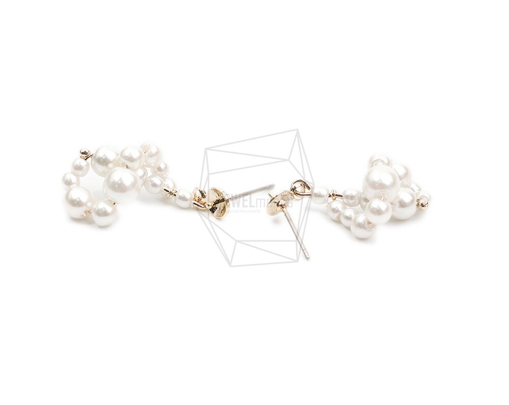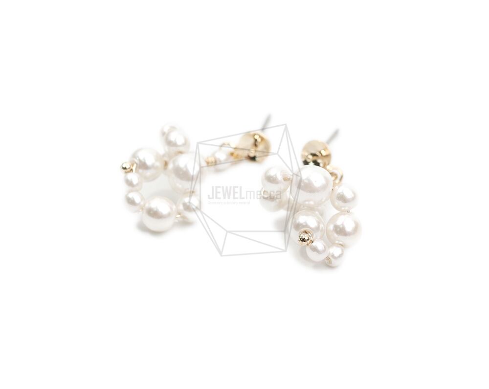 ERG-2065-G/2PCS/Pearl C shape Post Earring /12.7mm X 28mm/Gold Plated Over Brass,Imitation pearl,Stainless Post