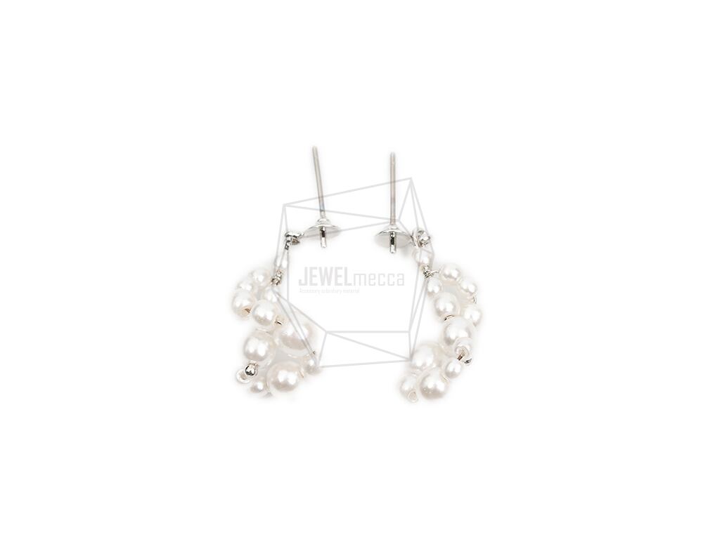 ERG-2065-R/2PCS/Pearl C shape Post Earring /12.7mm X 28mm/Rhodium Plated Over Brass,Imitation pearl,Stainless Post