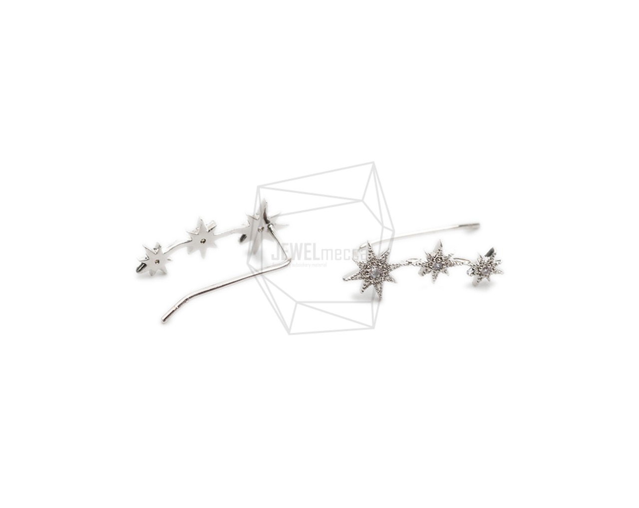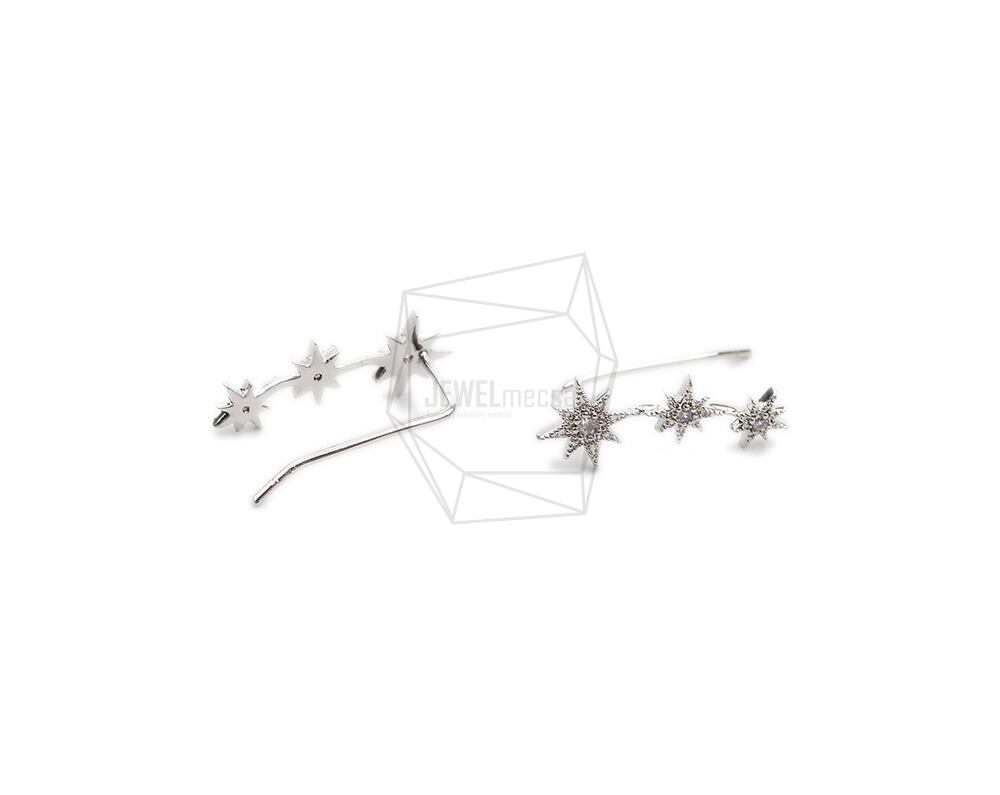 ERG-2066-R【2個入り】キュービックジルコニアトリプルスターイヤーフック,CZ Triple Star Ear hook/6.7mm x 16.7mm