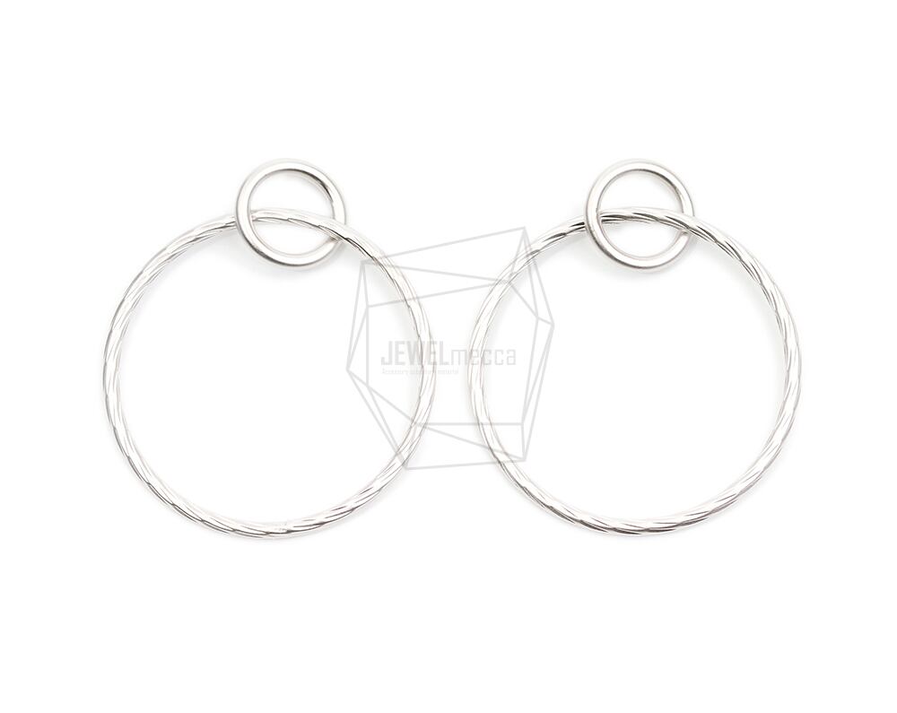 PDT-2589-MR/2PCS/Double Linked Rings Pendant/40mm X 50mm/Rhodium Gold Plated Over Brass