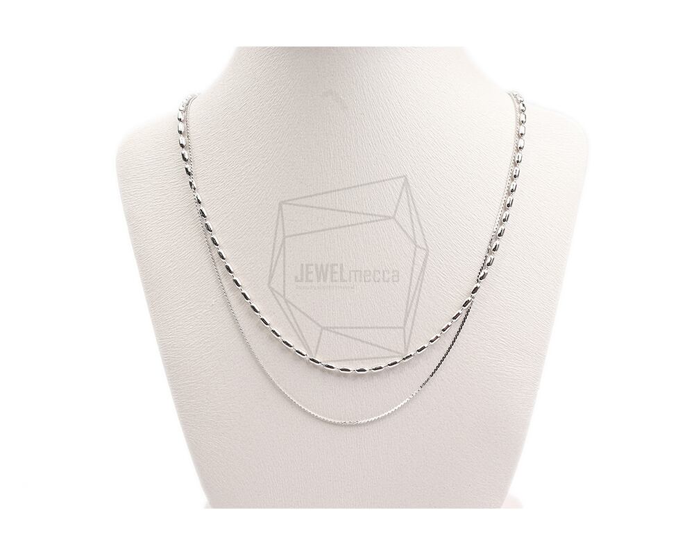 CHN-045-R/1pcs/Two Chains necklace/43cm/Rhodium Plated Over Brass