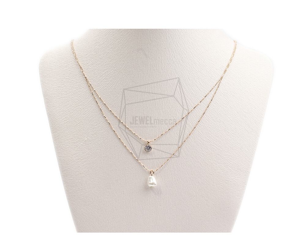 CHN-046-G/1pcs/Two Chains necklace/41cm/Gold Plated Over Brass