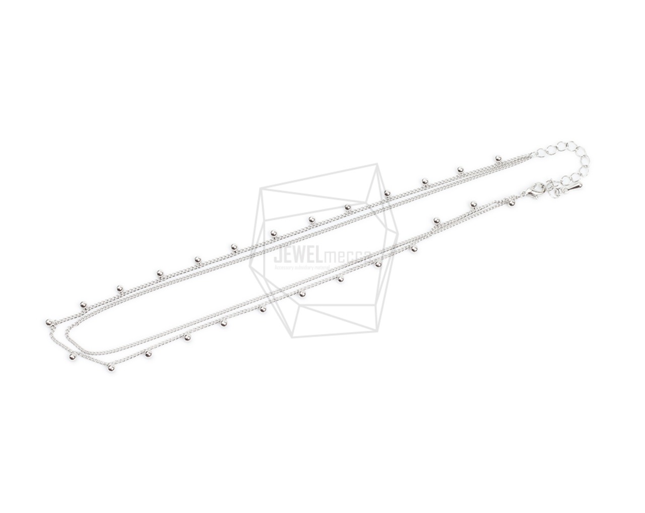 CHN-049-R/1pcs/Two Chains necklace/41cm/Rhodium Plated Over Brass