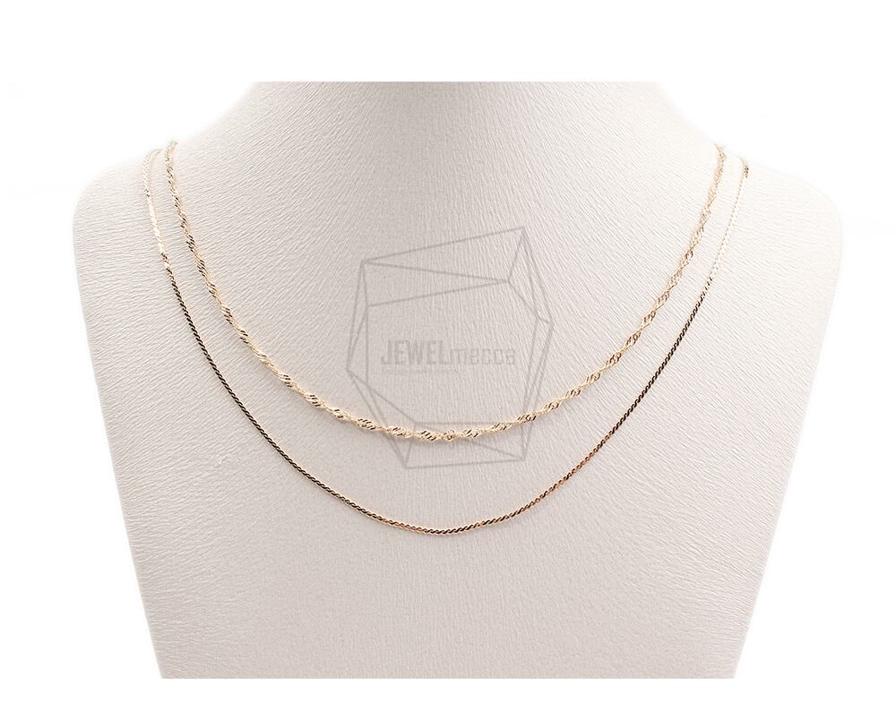 CHN-055-G/1pcs/Two Chains necklace/41cm/Gold Plated Over Brass