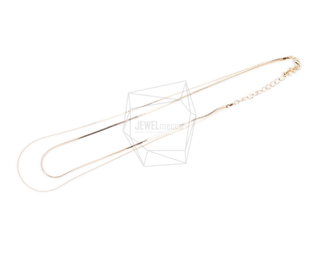 CHN-056-G/1pcs/Two Chains necklace/41cm/Gold Plated Over Brass