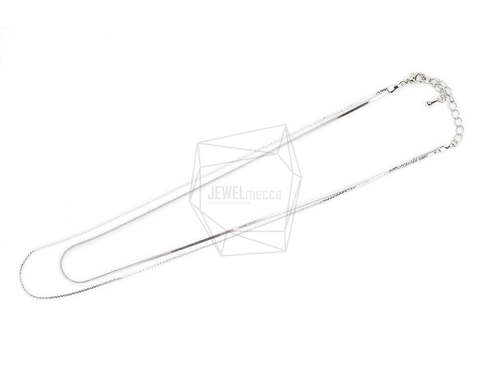 CHN-056-R/1pcs/Two Chains necklace/41cm/Rhodium Plated Over Brass