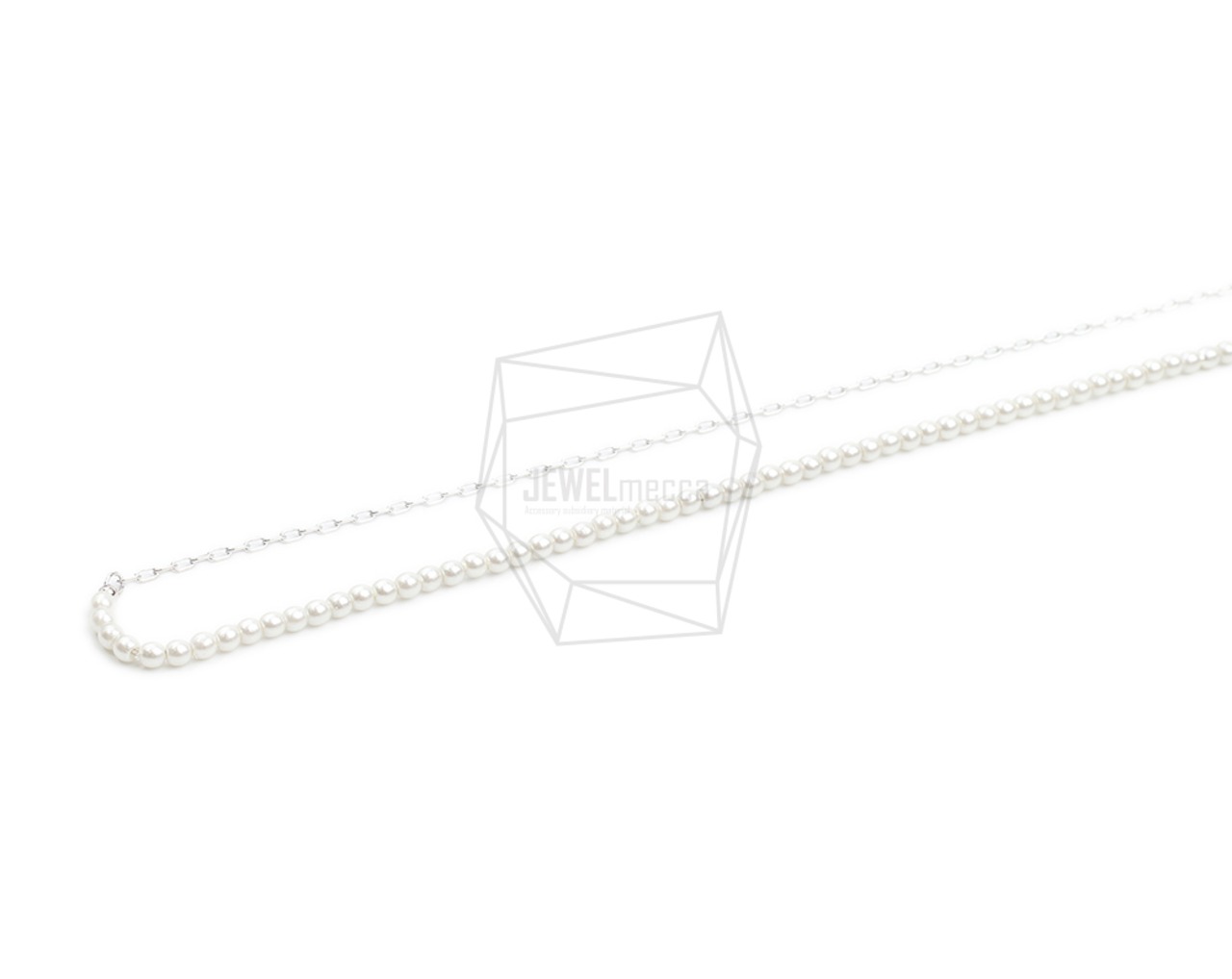 CHN-058-R/1pcs/Two Chains necklace/41cm/Rhodium Plated Over Brass