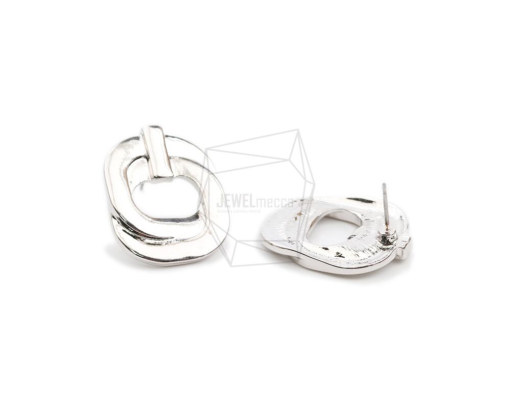 ERG-2067-R/2PCS/Double Round Post Earring/ 20mm X 26mm/ Rhodium Plated Over Tin,Stainless Post