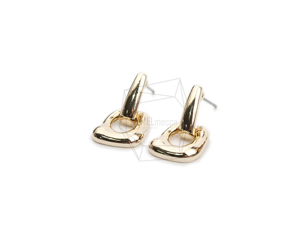 ERG-2068-G/2PCS/Wave Round Post Earring/11mm x 20mm/Gold Plated Over tin/Stainless Post