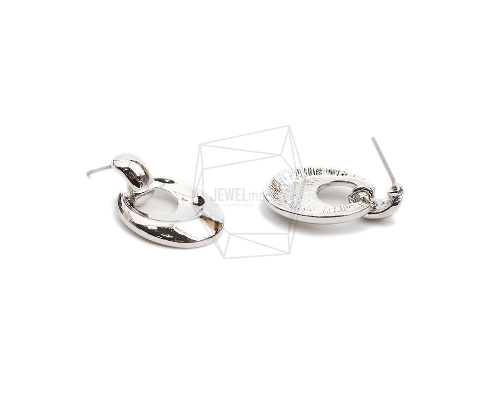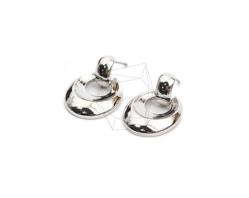 ERG-2069-R/2PCS/Double Round Post Earring/ 16mm X 24mm/Rhodium Plated Over Tin,Stainless Post