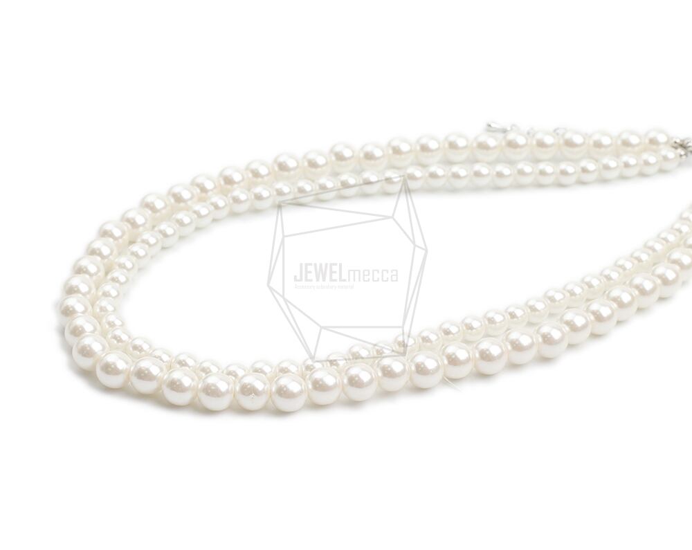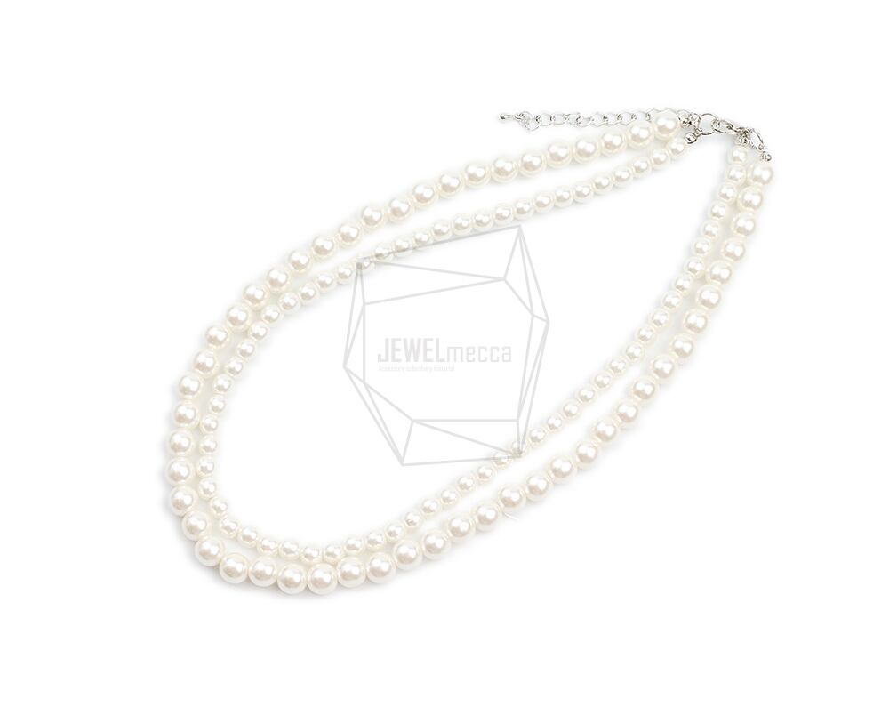 CHN-065-R/1pcs/Double Imitation Pearl necklace/45cm/Rhodium Plated Over Brass