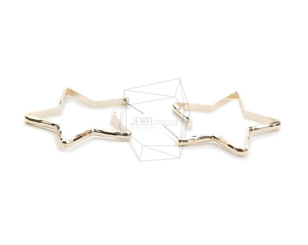 ERG-2080-G/2PCS/Star Earring Post/37mm x 37mm/Gold Plated over Brass/Stainless Post