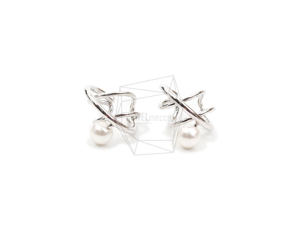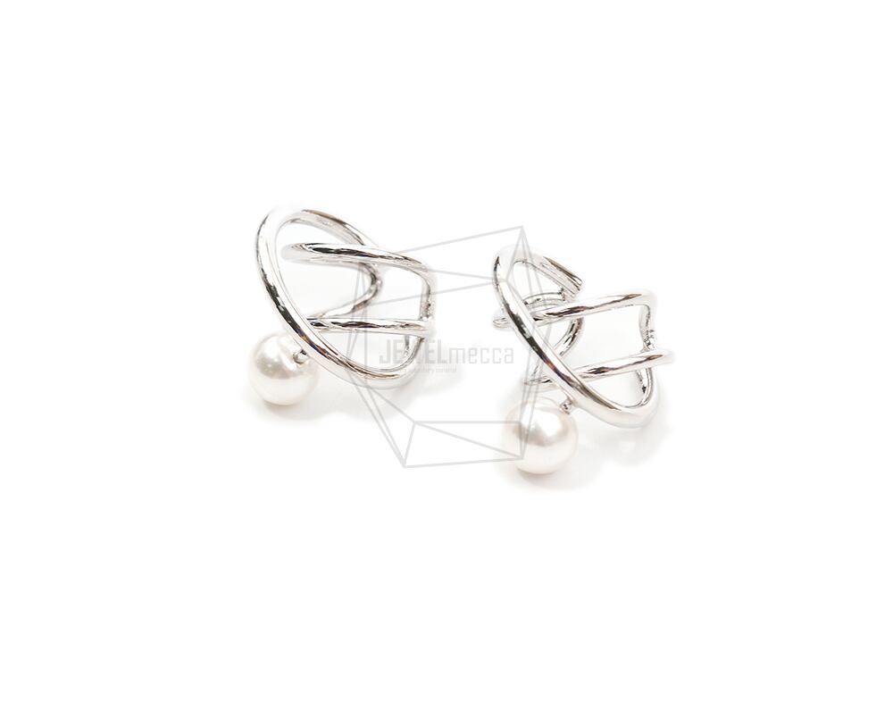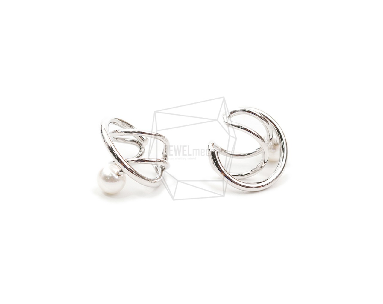 ERG-2084-R/2PCS/Round Earcuffs Earrings/19mm X 20mm/Rhodium Plated Over Brass,Imitation pearl