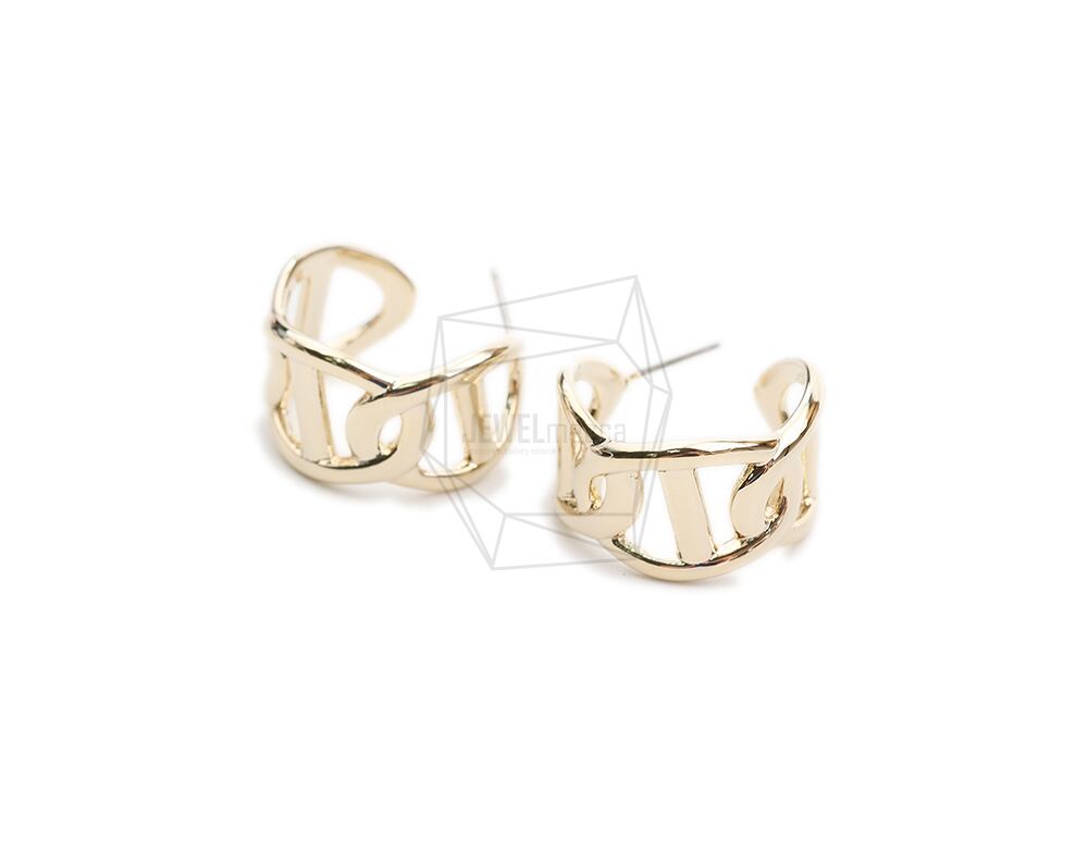 ERG-2086-G/2PCS/Round Post Earring/18mm x 20mm/Gold Plated Over Brass/Stainless Post