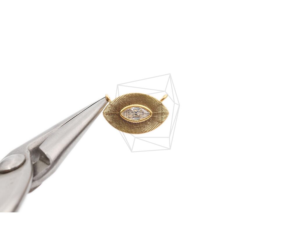 PDT-2592-MG/2PCS/Evil Eye Pendant/8.8mm X 14mm/Matte Gold Plated Over Brass,CZ