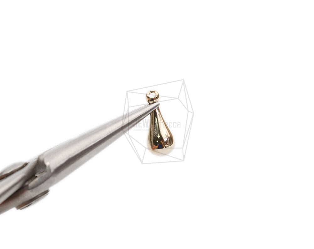 PDT-2594-G/2PCS/Water Drop Pendant/5mm X 11.6mm/Gold Plated Over Brass