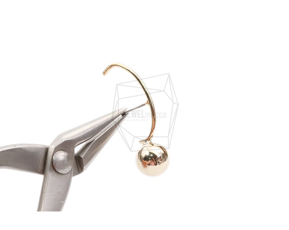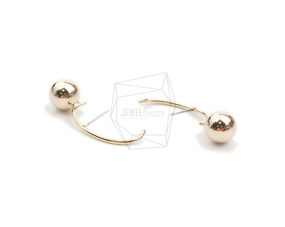 ERG-2091-G/2PCS/Round Ball Post Earring/10mm x 35mm/Gold Plated Over Brass ,Stainless Post