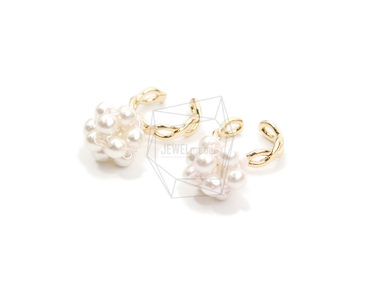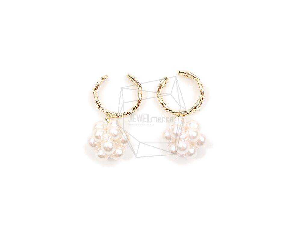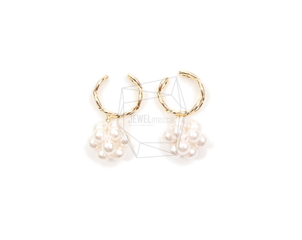 ERG-2092-G/2PCS/Round Earcuffs Earrings/12mm X 29mm/Gold Plated Over Brass,Imitation pearl