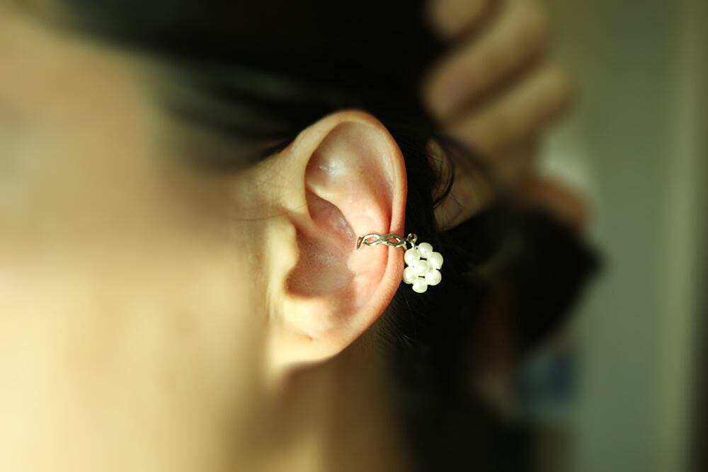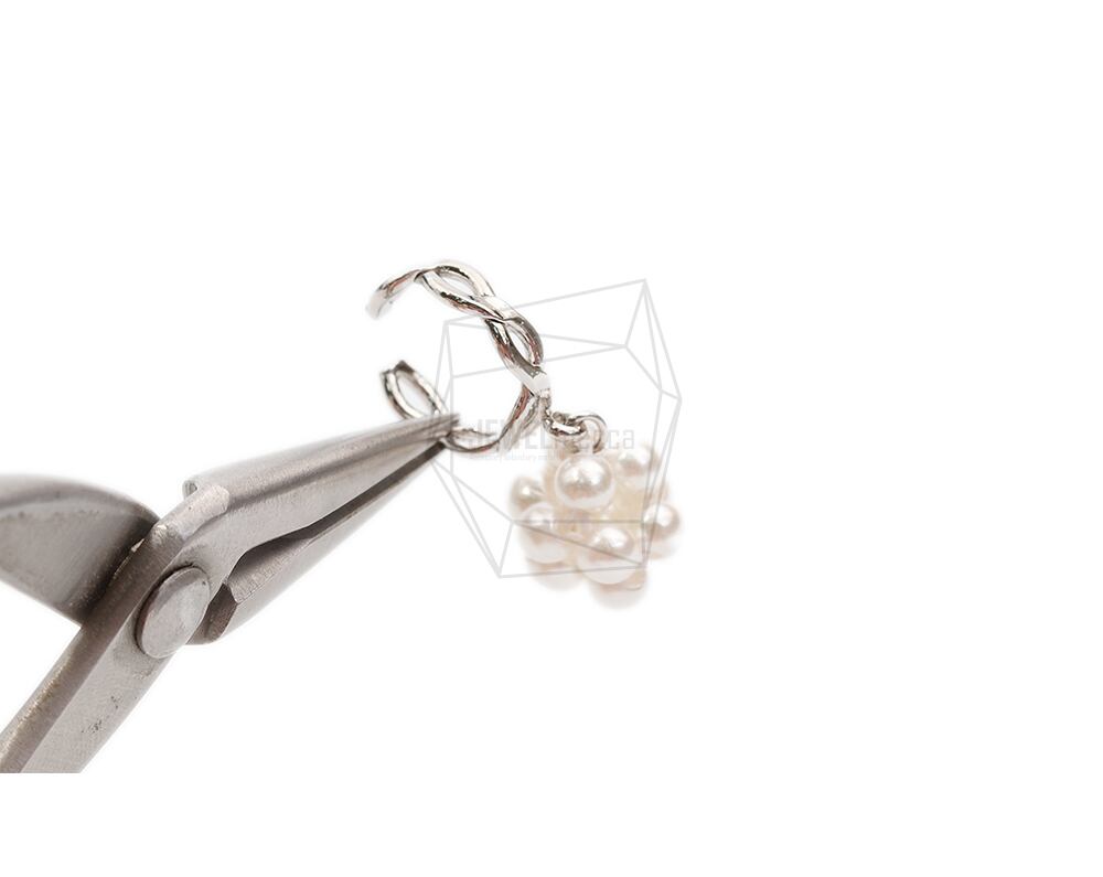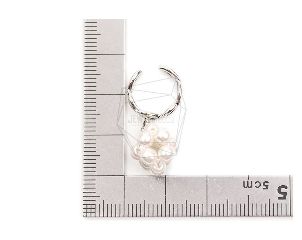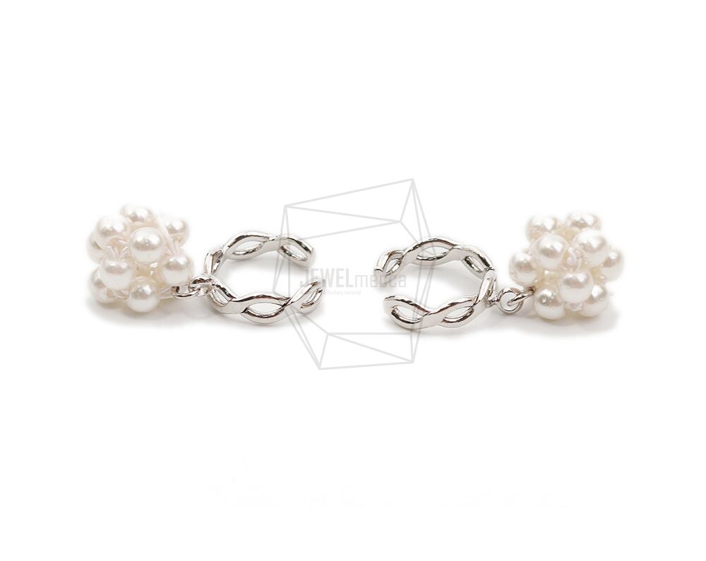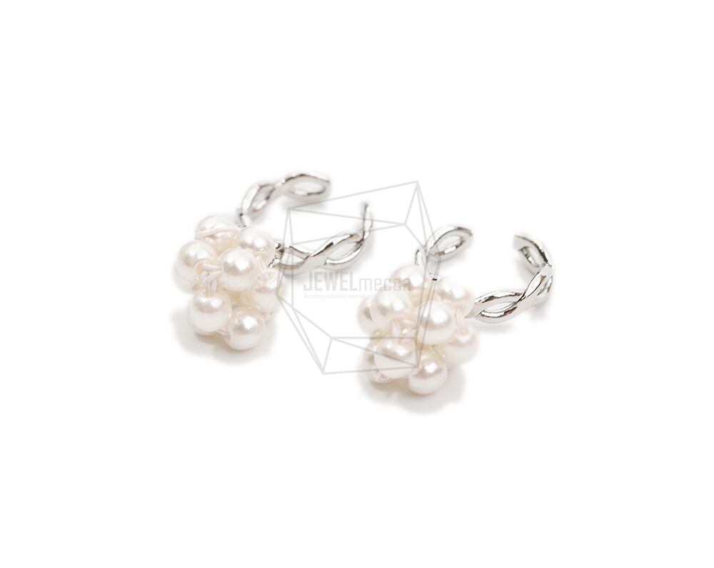 ERG-2092-R/2PCS/Round Earcuffs Earrings/12mm X 29mm/Rhodium Plated Over Brass,Imitation pearl