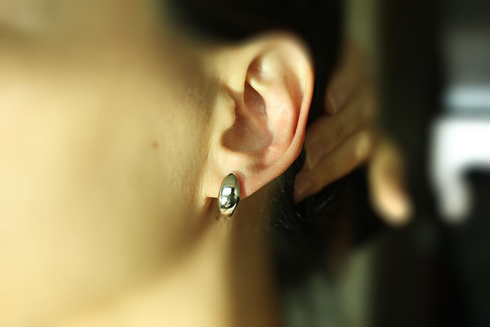 ERG-2098-R/2PCS/L shape post Earring/14mm x 17mm/Rhodium Plated Over tin/Titanium post
