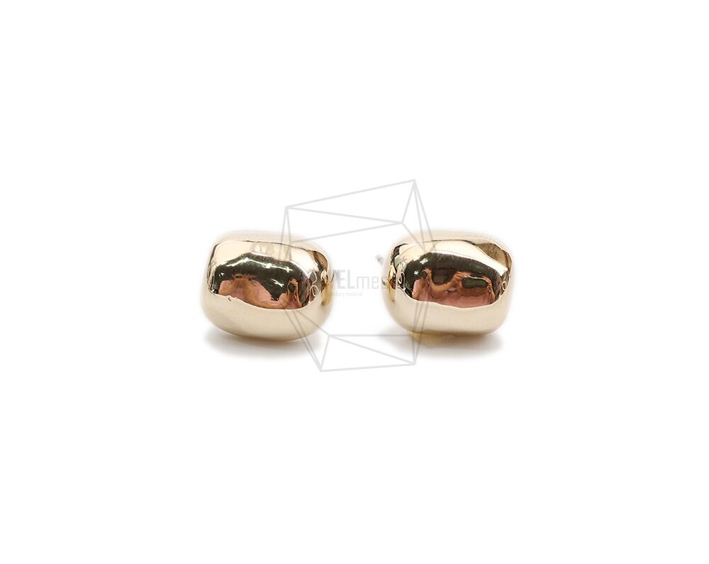ERG-2099-G/2PCS/Ball Post Earring/11.8mm X 14.5mm/Gold Plated Over Brass,Titanium post