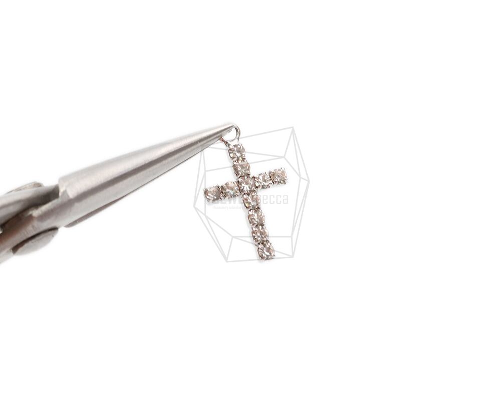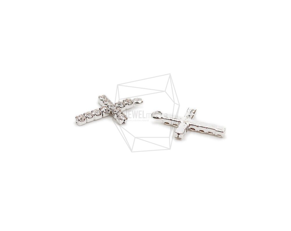 PDT-2595-R/2PCS/Thin Cross Pendant/11mm X 18mm/Rhodium Plated Over Brass