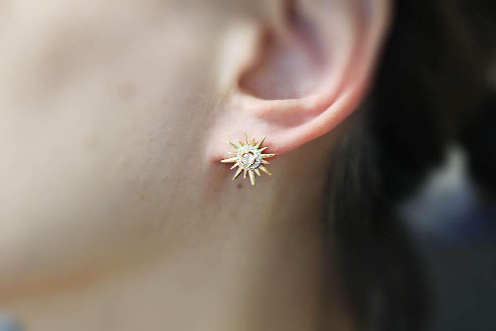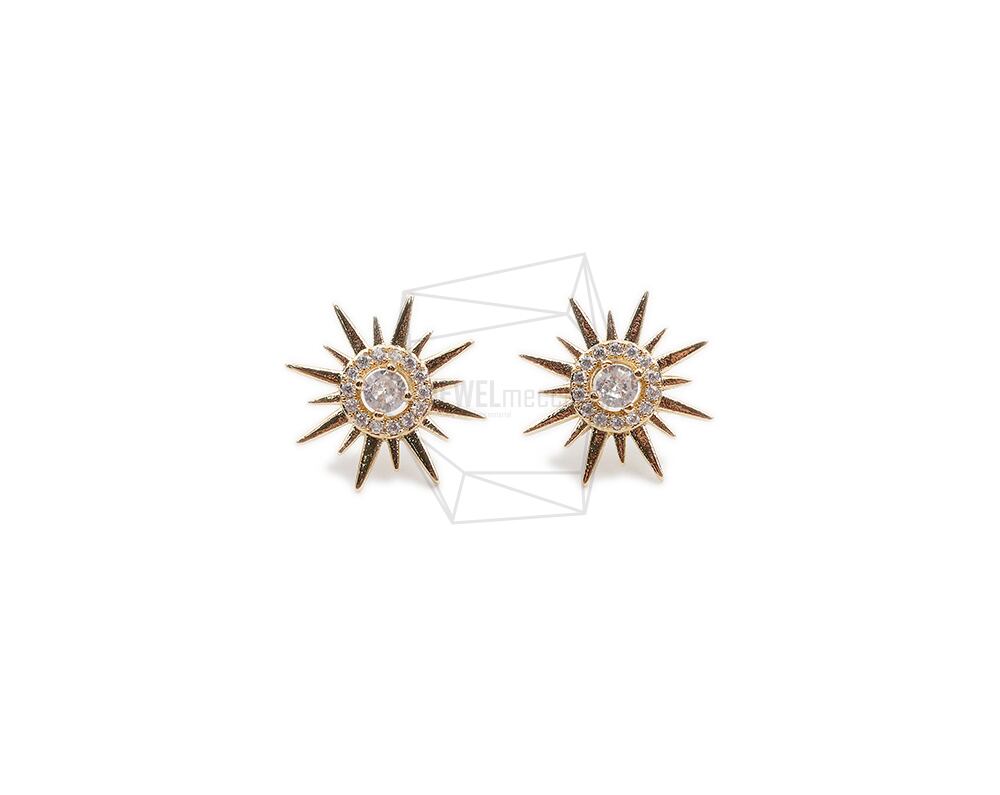 ERG-2102-G/2PCS/Cubic Sun Post Earrings/14.5mm X 14.8mm/Gold Plated Over Brass,silver post