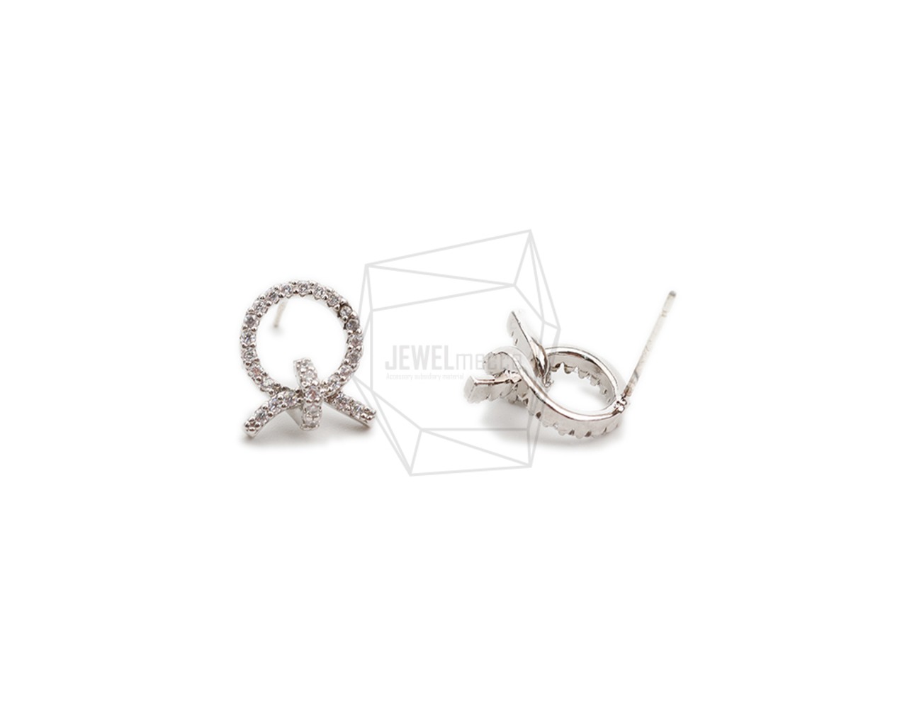 ERG-2103-G/2PCS/Cubic Round Post Earrings/11.6mm X 12.8mm/Gold Plated Over Brass,silver post