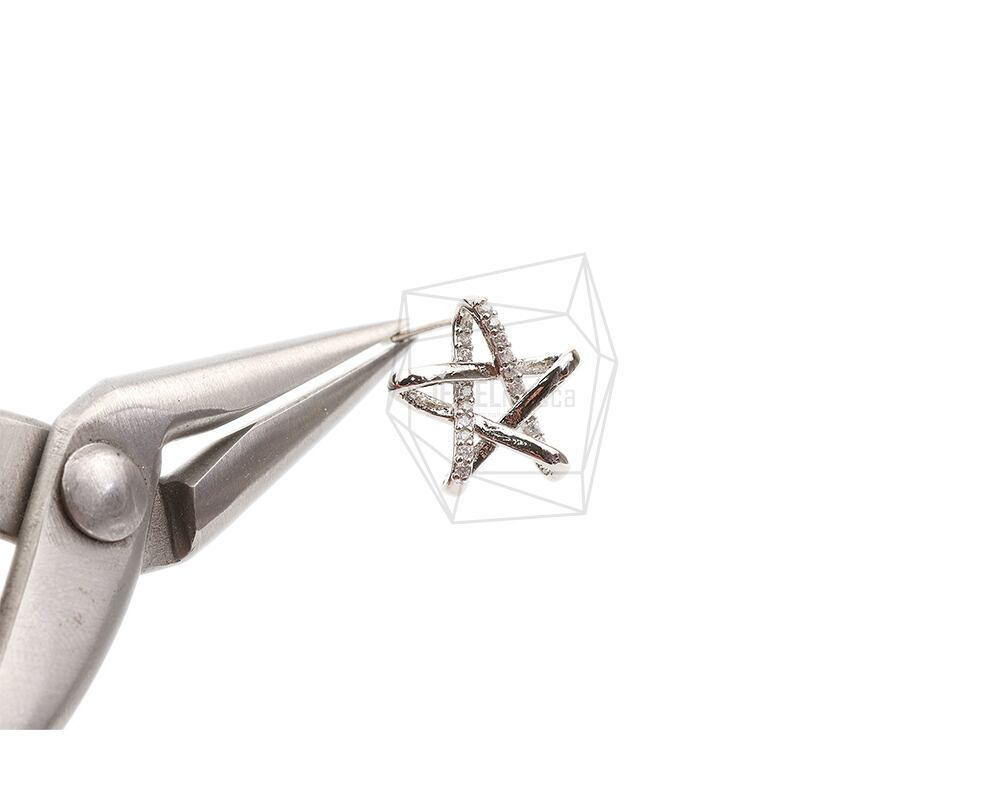 ERG-2104-R/2PCS/Cubic Star Post Earrings/13mm X 13.6mm/Rhodium Plated Over Brass,silver post