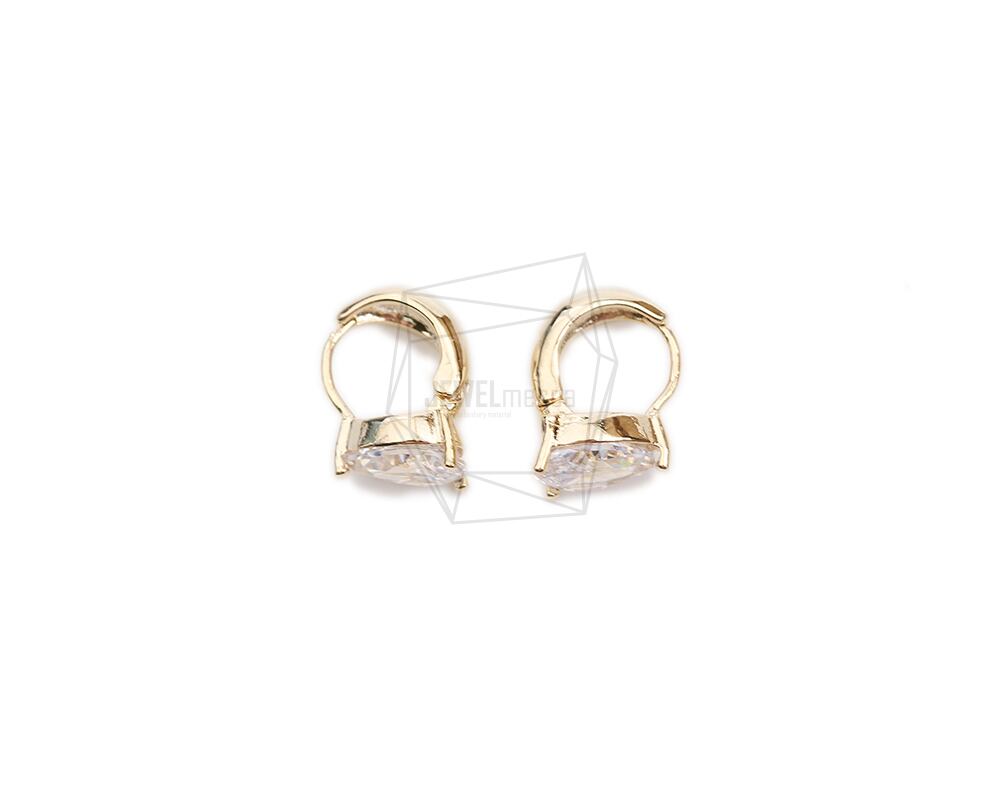 ERG-2106-G/2PCS/Oval Glass One touch Post Earring/6mm X 8.8mm/Gold Plated Over Brass,Glass