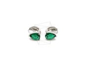 ERG-2108-R/2PCS/Oval Glass One touch Post Earring/6mm X 8.8mm/Rhodium Plated Over Brass,Silver Post,Glass