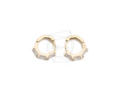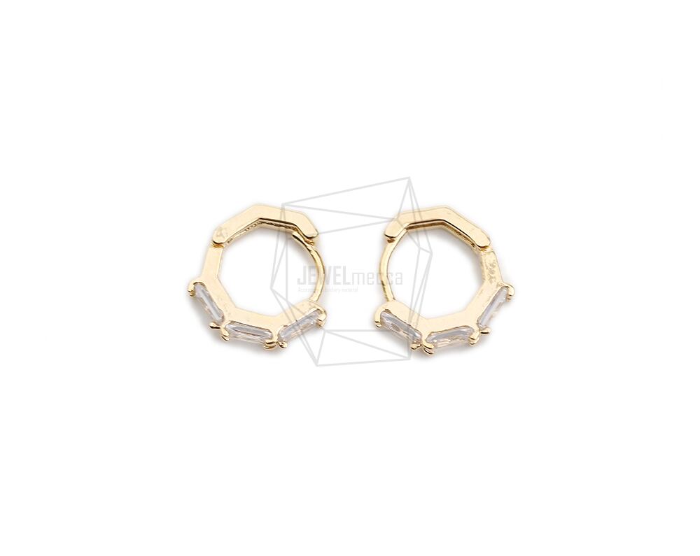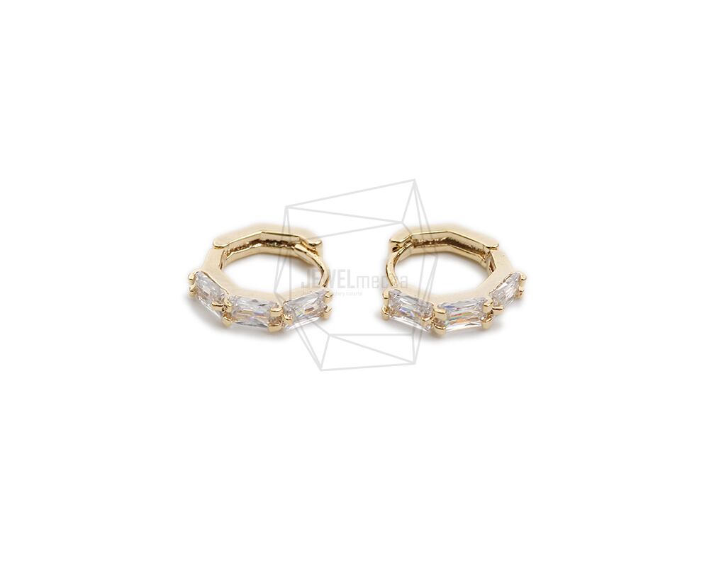 ERG-2111-G/2PCS/Round CZ One touch Post Earring/11.8mm X 11.8mm/Gold Plated Over Brass,CZ