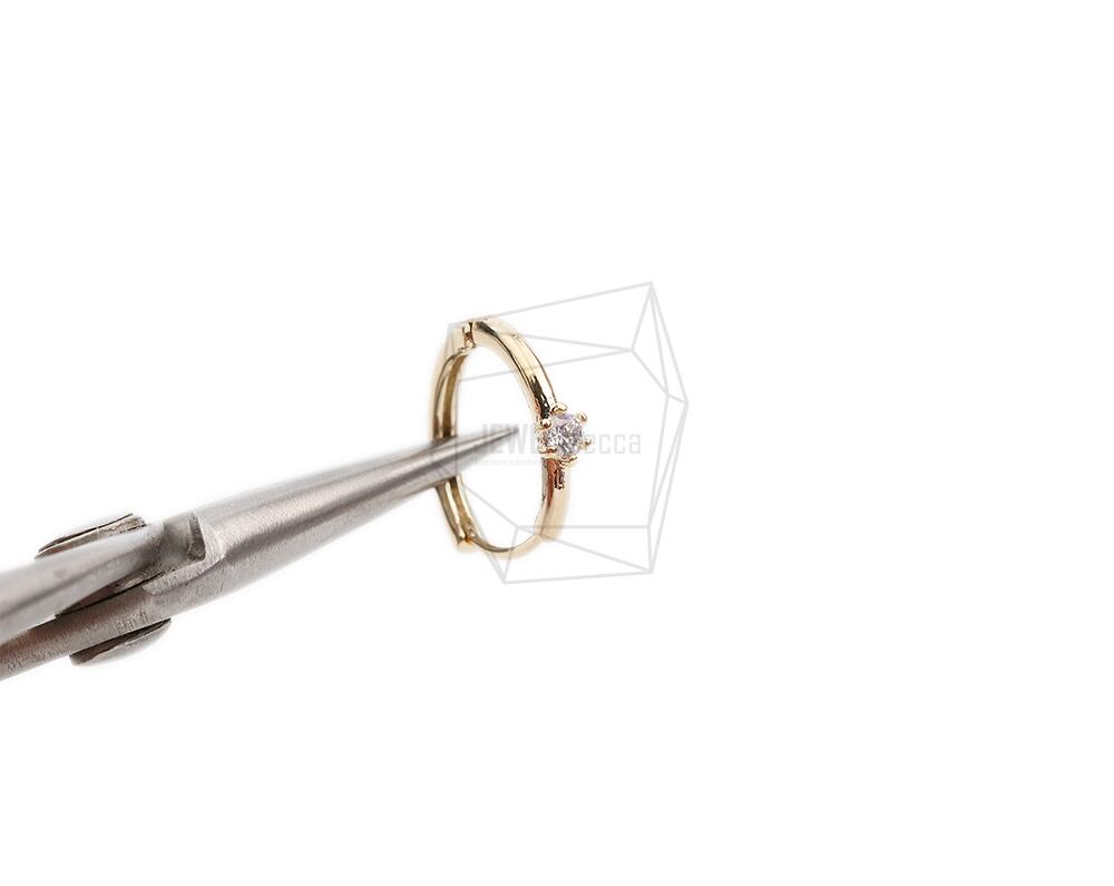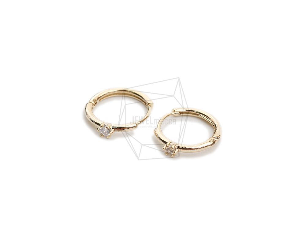 ERG-2113-G/2PCS/Round CZ One touch Post Earring/14mm X 16mm/Gold Plated Over Brass,CZ