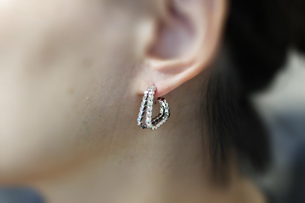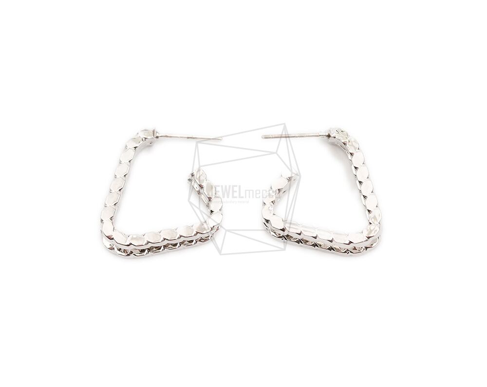 ERG-2118-R/2PCS/Double triangle post earring/18mm x 19mm/Rhodium Plated Over Brass ,Titanium post