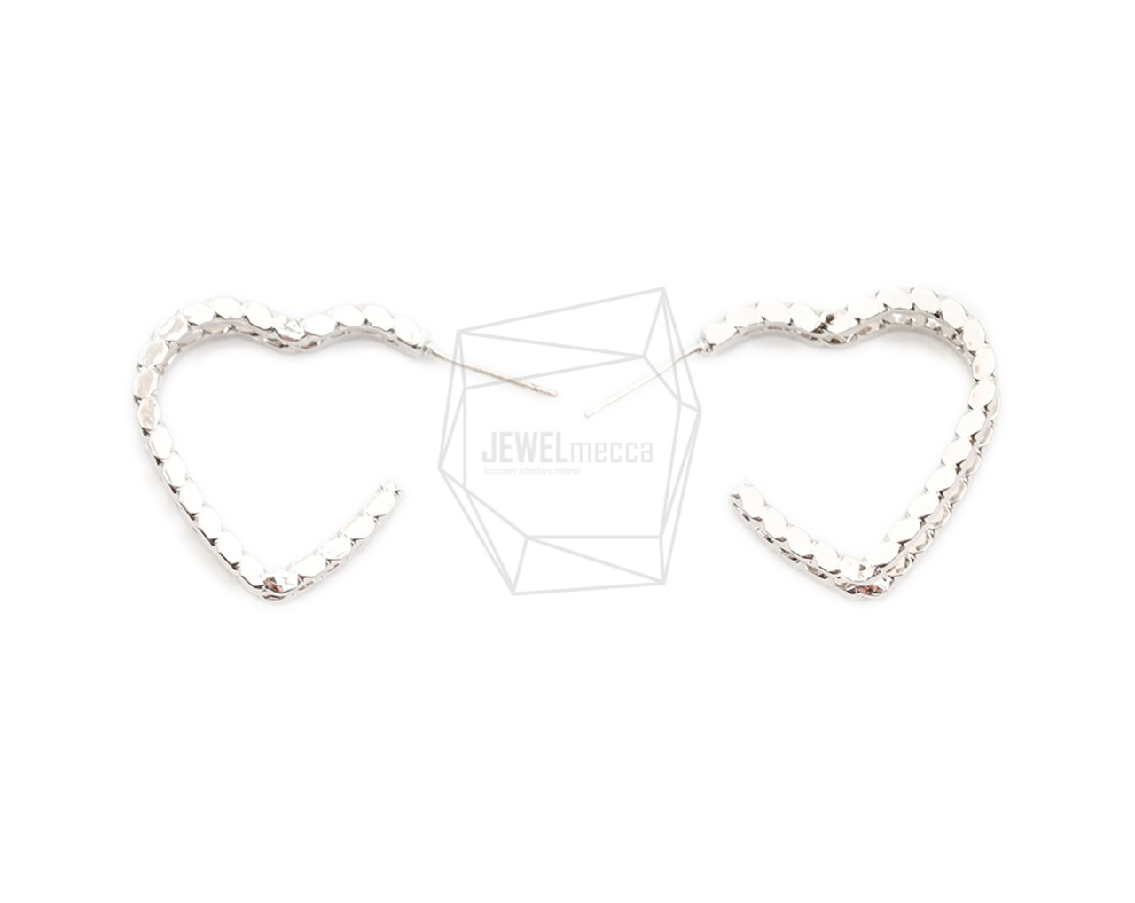 ERG-2120-R/2PCS/Double Heart post earring/24mm x 25mm/Rhodium Plated Over Brass ,Titanium post