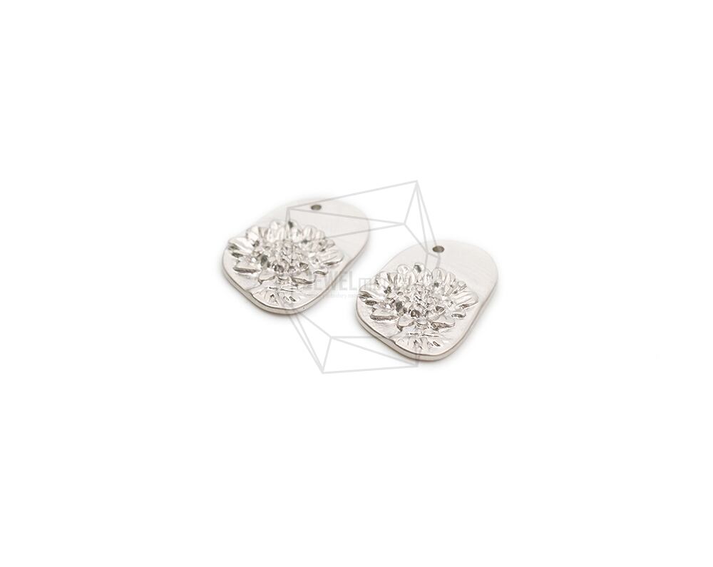 PDT-2602-MR/2PCS/Round Flower Charm Pendant/11mm X 16mm/Matte Rhodium Plated Over Brass