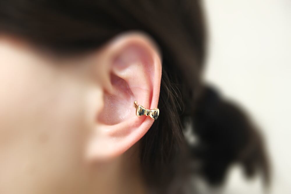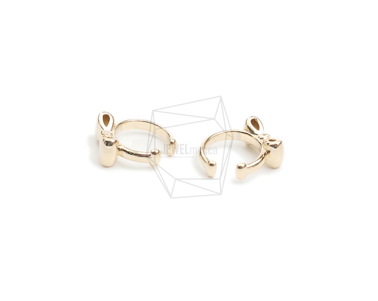 ERG-2133-G/2PCS/Ribbon Earcuffs Earrings/6mm X 12mm/Gold Plated Over Brass,Imitation pearl