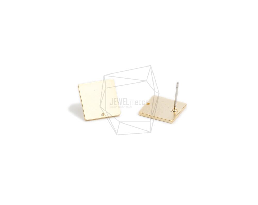 ERG-2137-MG/2PCS/Square Post Earring/12mm X 12mm/Matte Gold Plated Over Brass,Titanium post